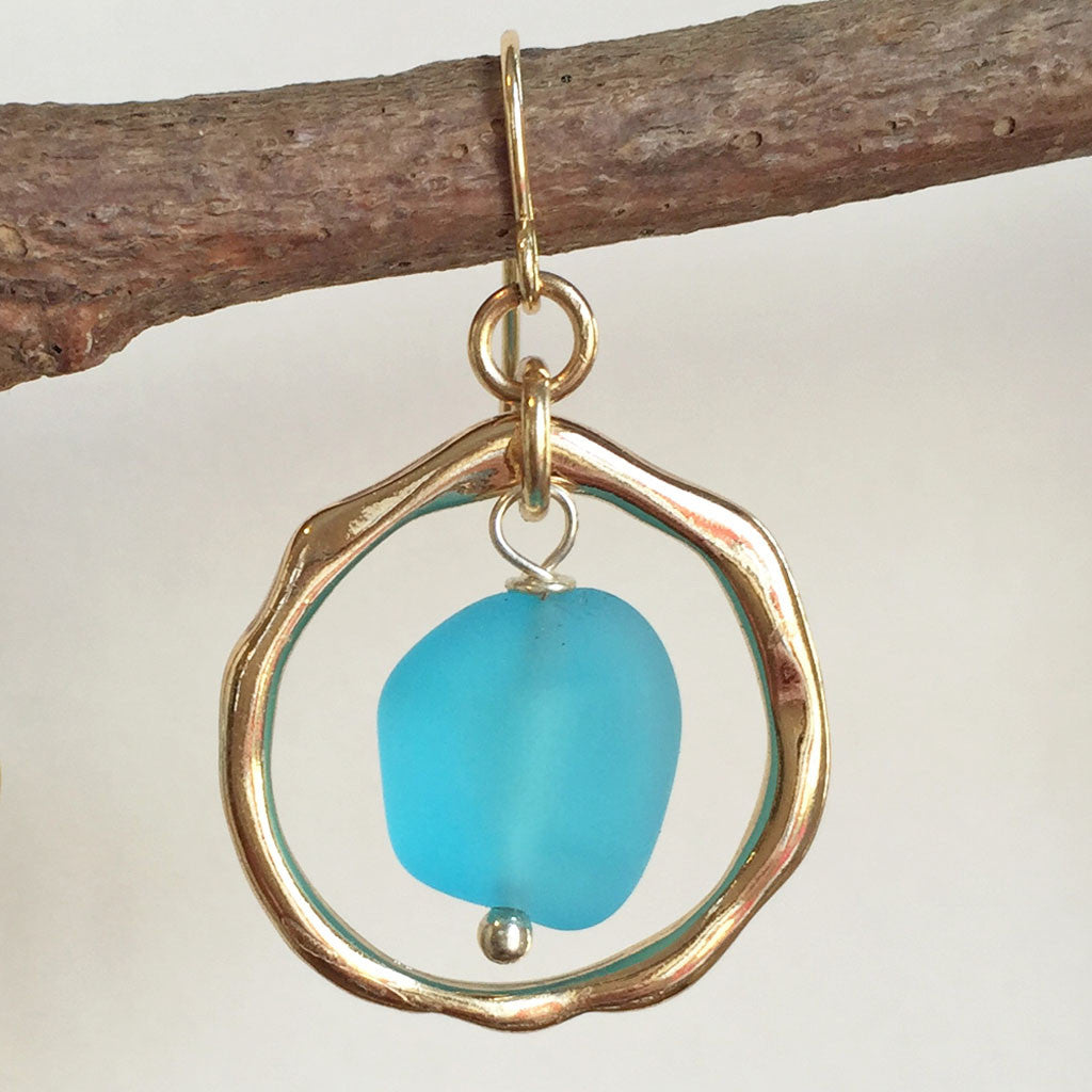 GOLDTONE OCEAN WAVES SEA GLASS EARRINGS - NEW!
