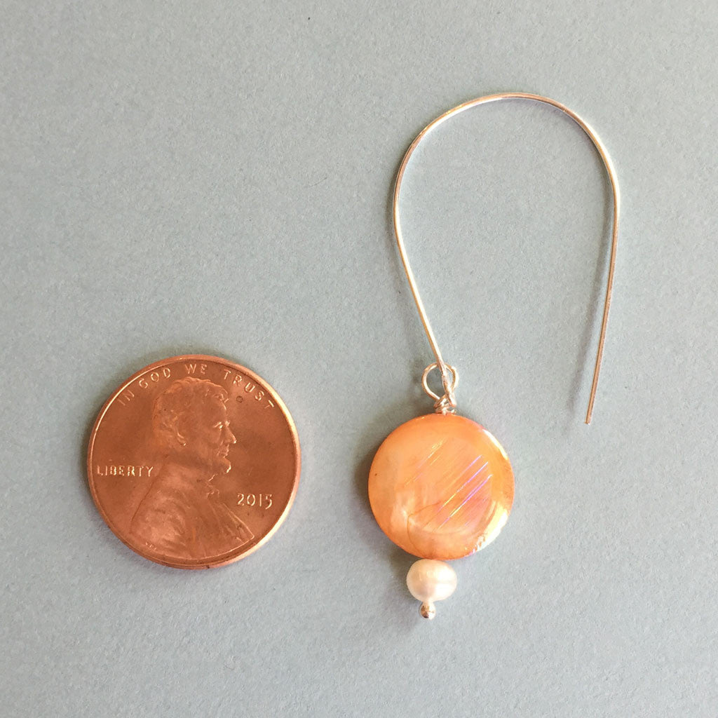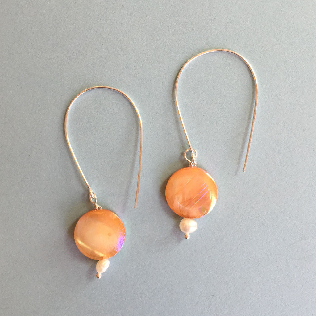 Peach freshwater mother of pearl coin in natural dye