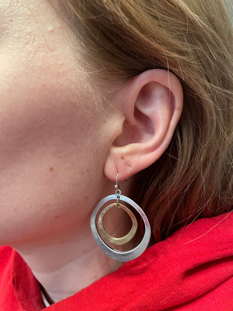 The burnished brass and gently buffed silvertone hoops are studio favorites! Lightweight and fun to wear.