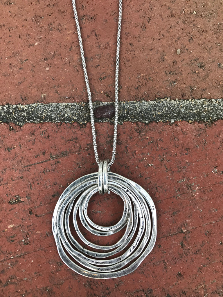 Concentric circles pendant - made with love in our Wellfleet studio. Inspired by the way the moon circles the earth. . .