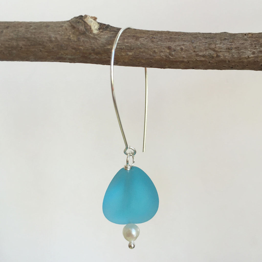 Perfect for that summer dress! Made of turquoise tumbled sea glass - recycled glass that is melted and formed, then tumbled in sand to give a lovely satin finish. . .