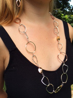 TRICOLOR LONG LINK NECKLACE & EARRINGS SET