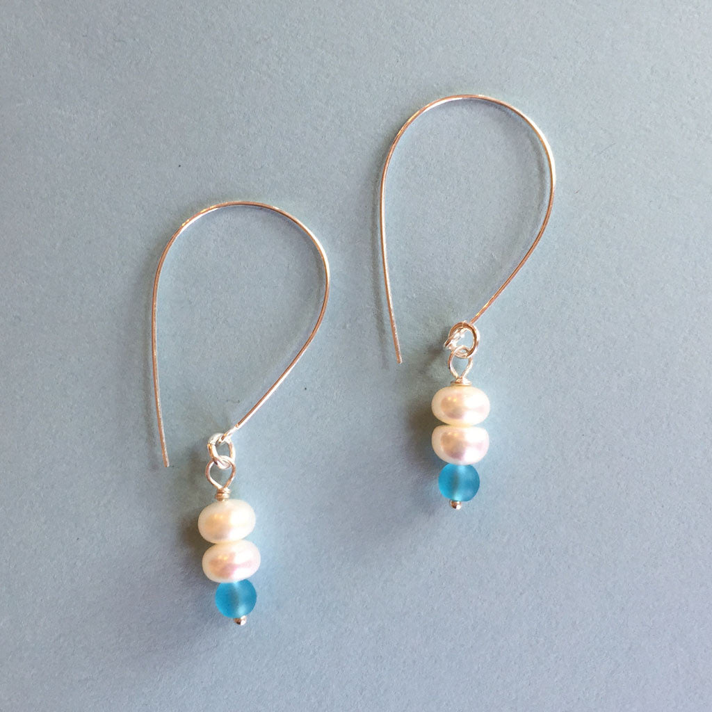 Perfect for that summer dress! Made of the finest freshwater pearls and tumbled sea glass - recycled glass that is melted and formed, then tumbled in sand to give a lovely satin finish. . .